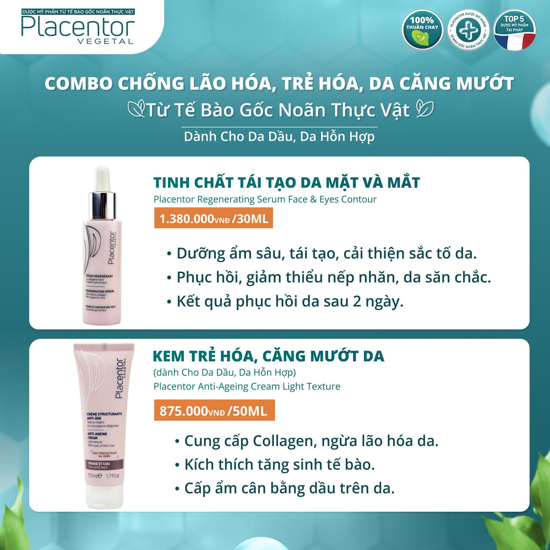 - Tinh chất tái tạo da mặt và mắt Placentor Regenerating Serum Face & Eyes Contour 30ml