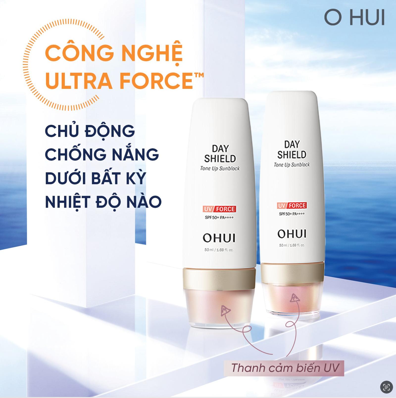 Kem chống nắng OHUI UV Force chống tia UV gấp 2 lần tạo lớp nền tươi sáng, siêu mỏng nhẹ, không lem trôi – 50ml