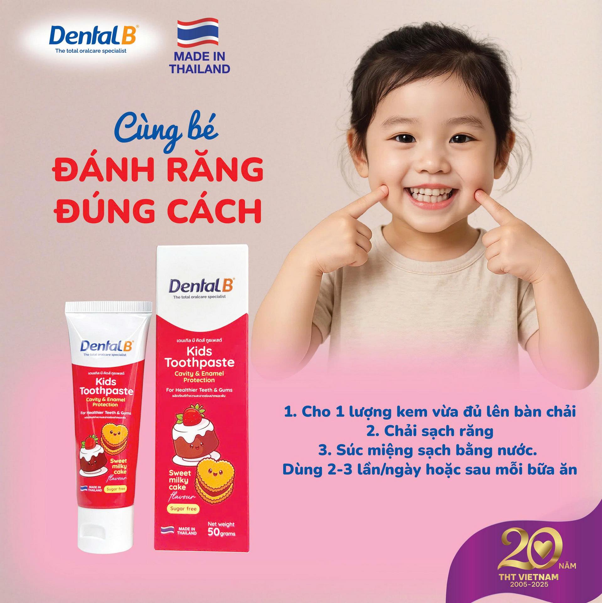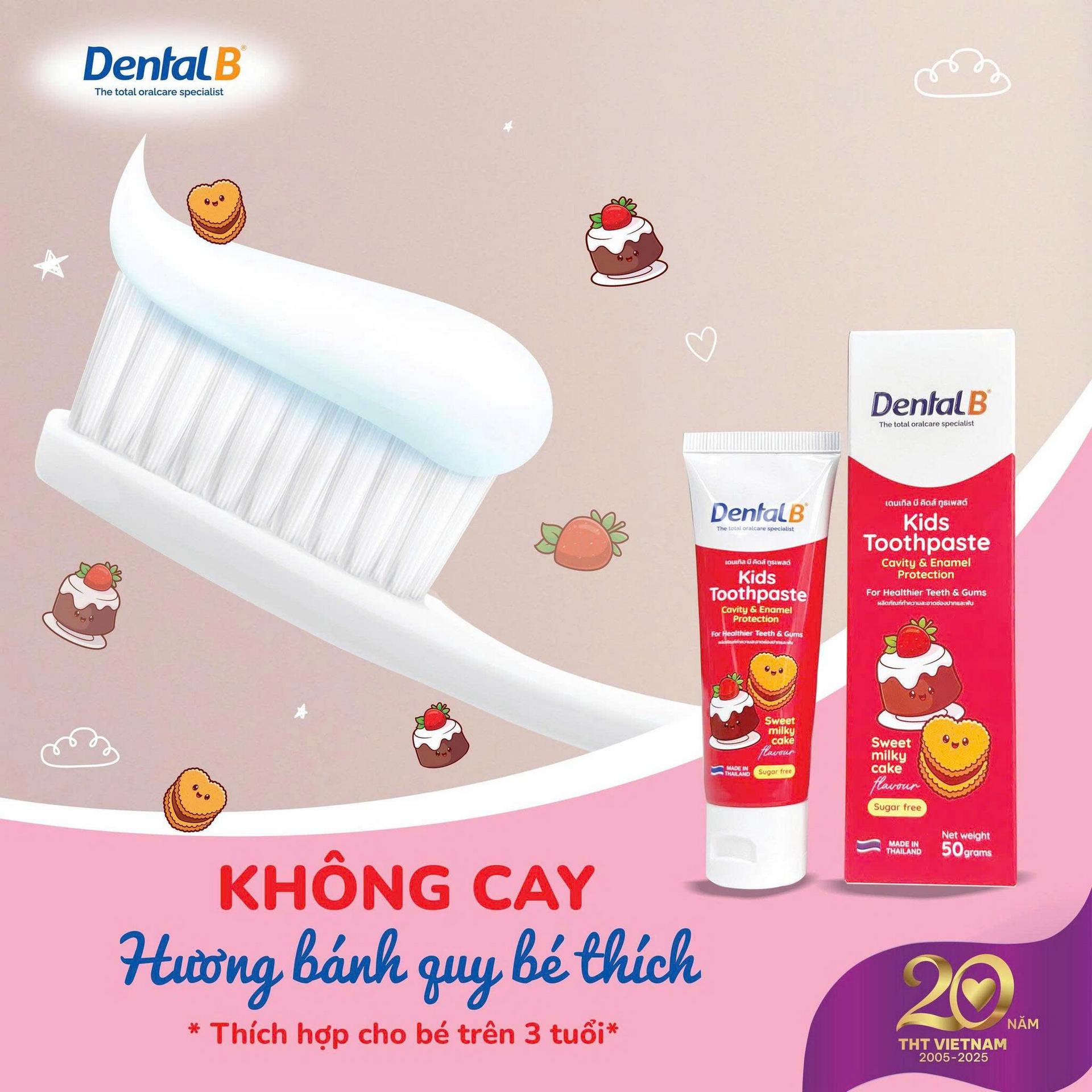 - Tên Sản Phẩm: Kem đánh răng thảo dược trẻ em Dental B Thái Lan vị bánh sữa 50gr