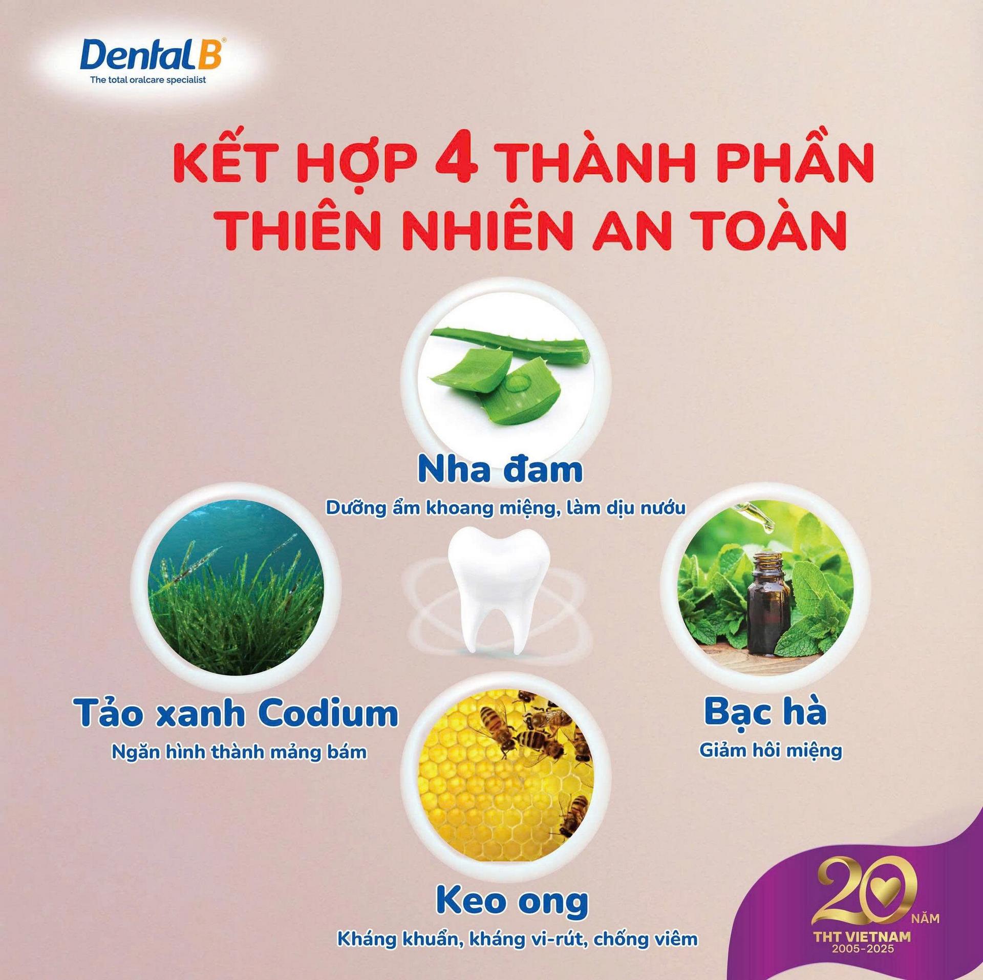- Chiết xuất nha đam: Dưỡng ẩm khoang miệng, giảm kích ứng, cải thiện sức khỏe nướu