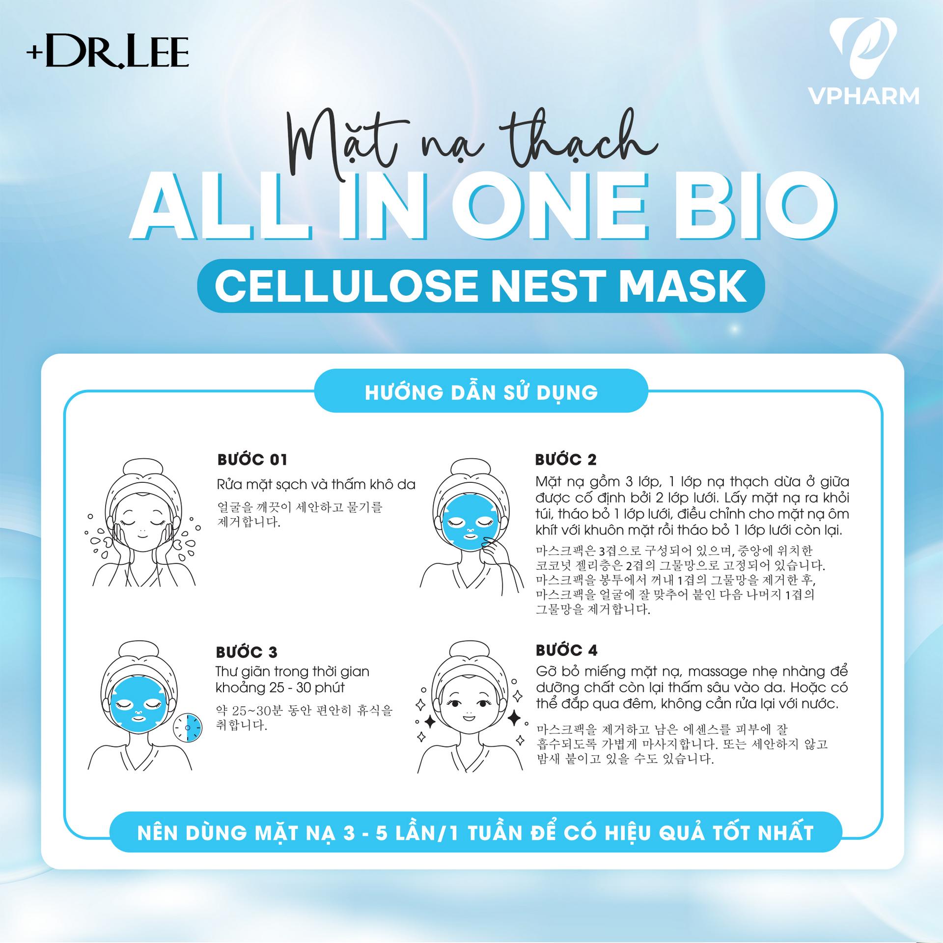 Mặt nạ dưỡng da +Dr.lee – All In One Bio Cellulose Nest Mask giúp cung cấp độ ẩm dồi dào, hỗ trợ làm dịu làn da khô ráp và mệt mỏi sau một ngày dài. Với kết cấu mát lạnh và giàu dưỡng chất, sản phẩm hỗ trợ làm mờ nếp nhăn, mang lại làn da mềm mịn, căng bóng và tràn đầy sức sống.