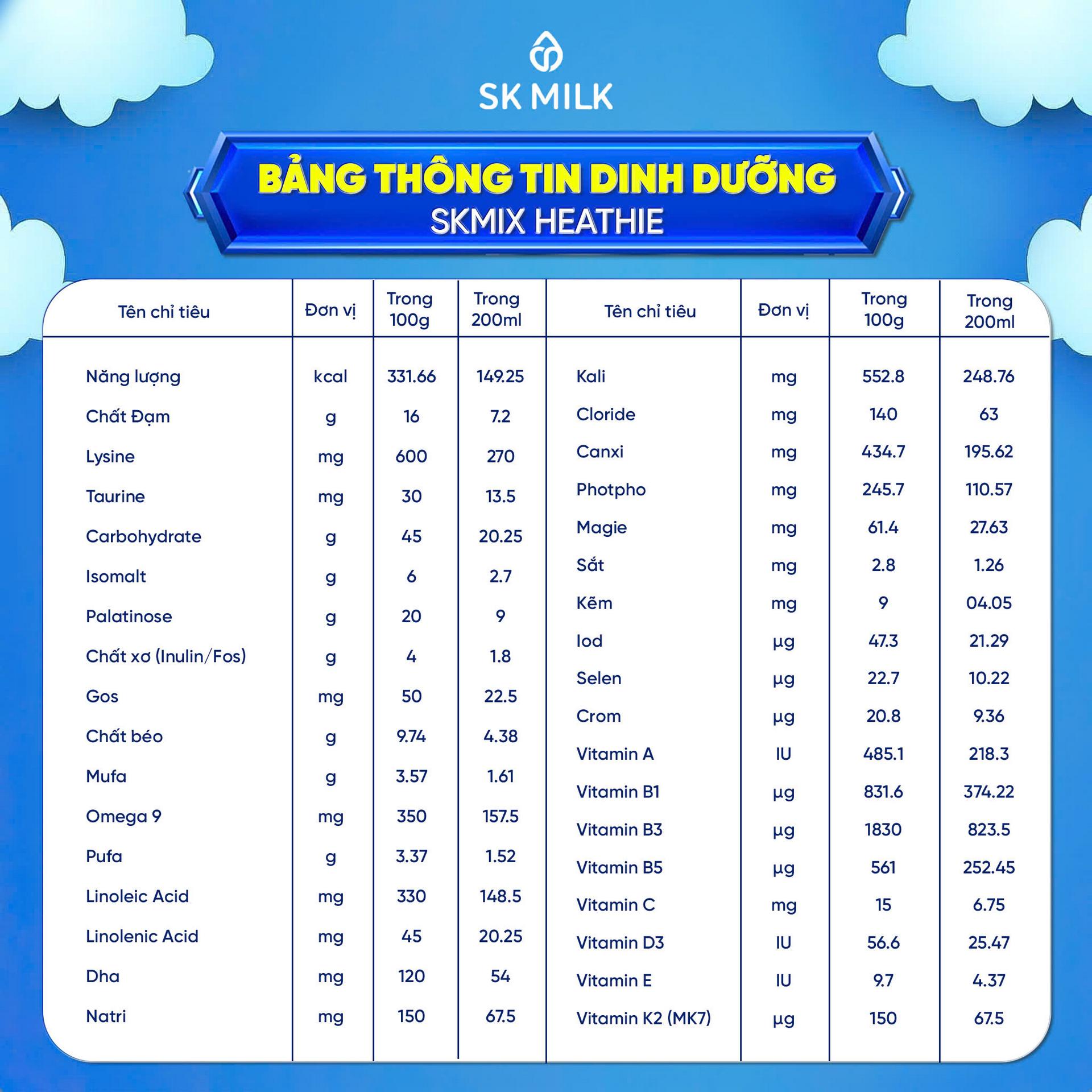 Tên sản phẩm: Thực phẩm bổ sung SKMIX HEATHIE
