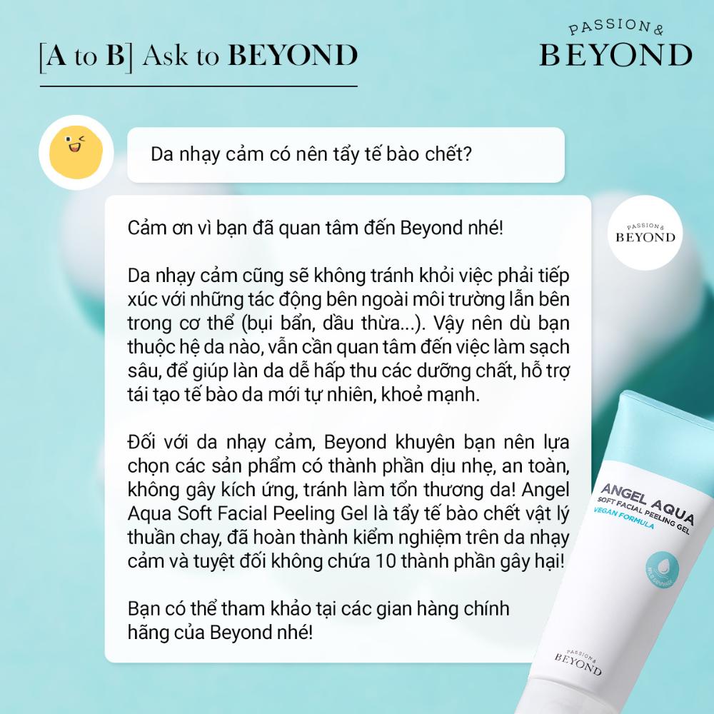 1. Tên sản phẩm: BEYOND Tẩy tế bào chết vật lý Thuần Chay dịu nhẹ 200ml (BEYOND ANGEL AQUA SOFT FACIAL PEELING GEL VEGAN FORMULA)