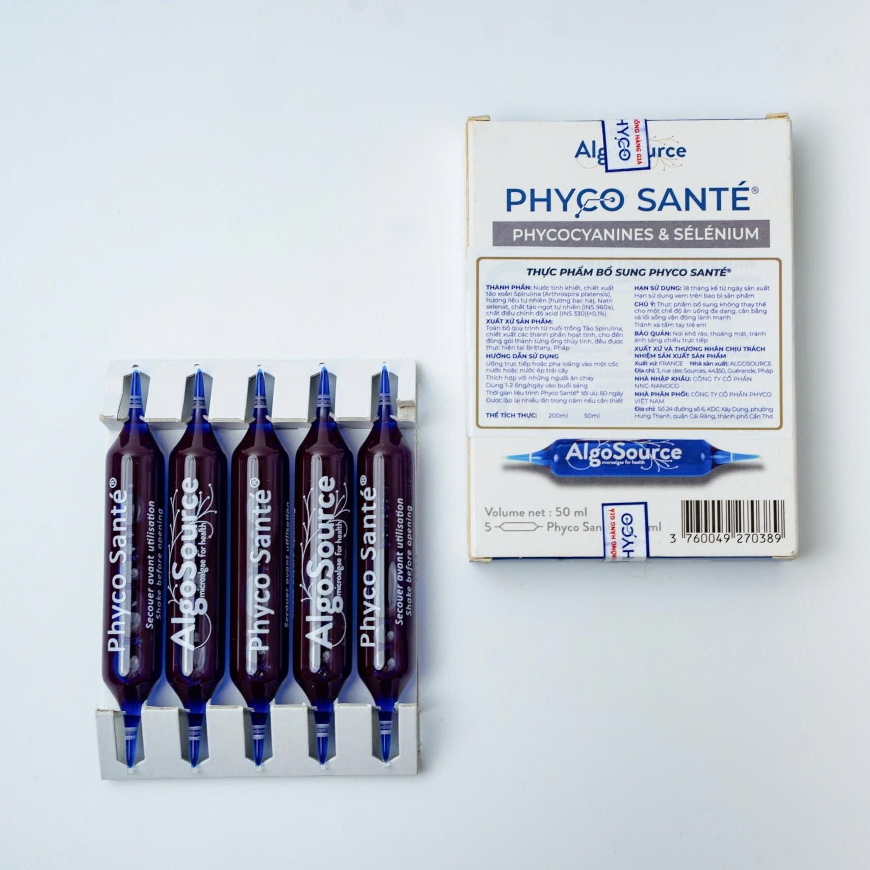 Thành phần: Nước tinh khiết, chiết xuất Phycocyanin từ tảo xoắn spirulina (Arthrospira platensis), hương liệu tự nhiên ( hương bạc hà), Natri selenat, chất tạo ngọt tự nhiên ( INS 960a), chất điều chỉnh độ acid ( INS 330) (<0,1%)