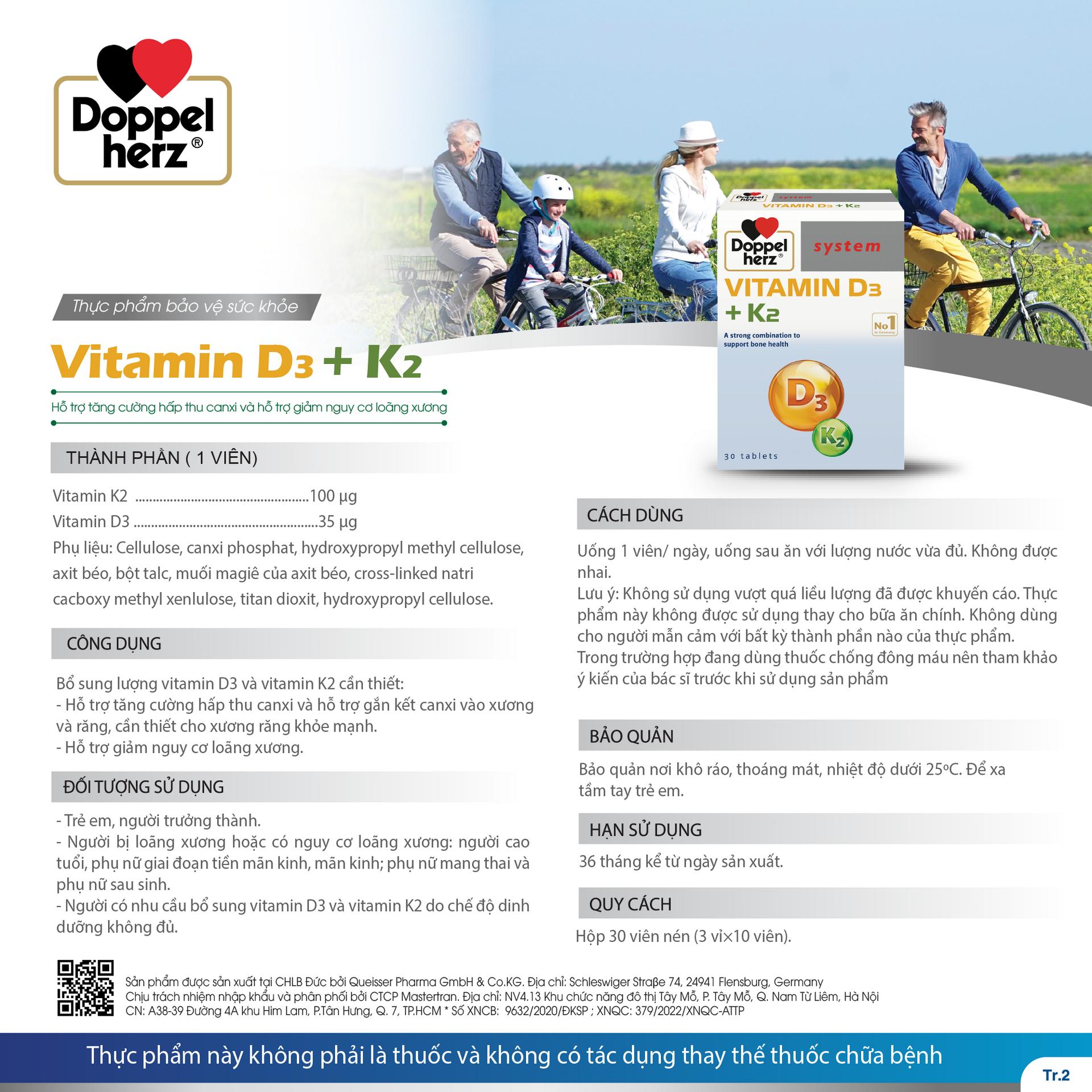 – Thực phẩm bảo vệ sức khỏe Vitamin D3 + K2 bổ sung vitamin D3 và K2 giúp hỗ trợ tăng cường hấp thu canxi và hỗ trợ xương khỏe mạnh