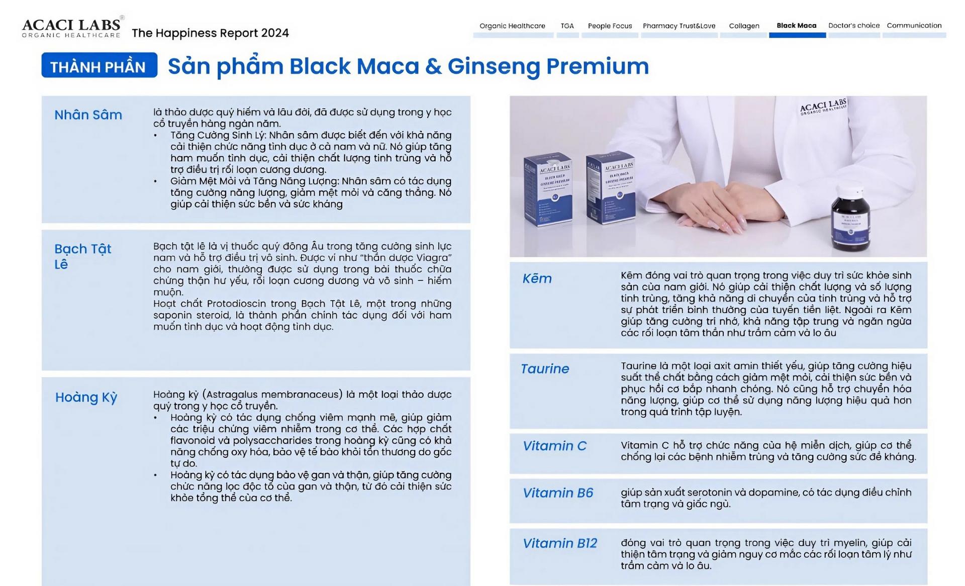 1. Tên Sản phẩm : Viên uống bổ thận tăng cường sinh lý Acaci Labs Black Maca & Ginseng Premium Australia 30v