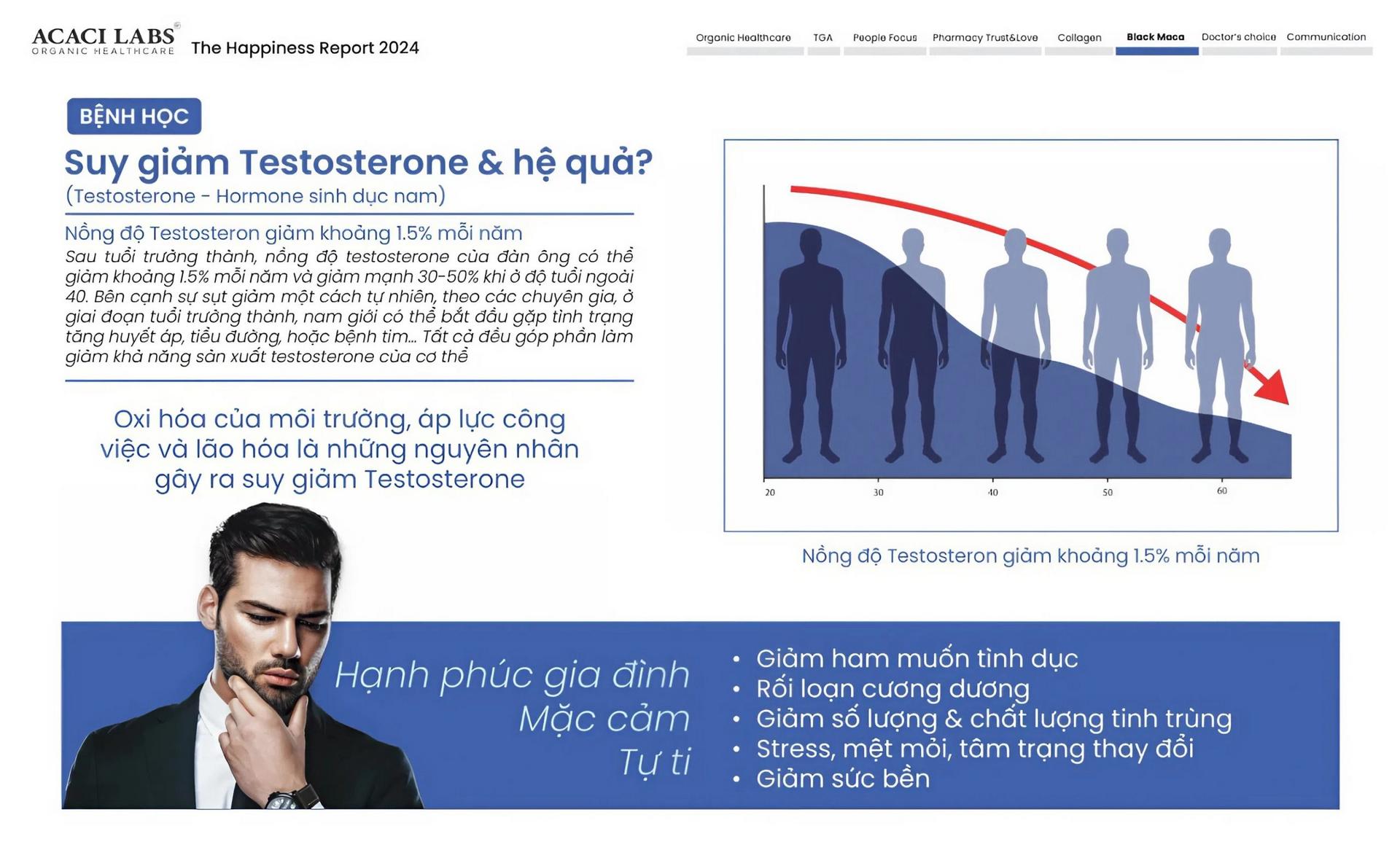 - Hỗ trợ cải thiện và duy trì mức Testosterone nội sinh trong cơ thể