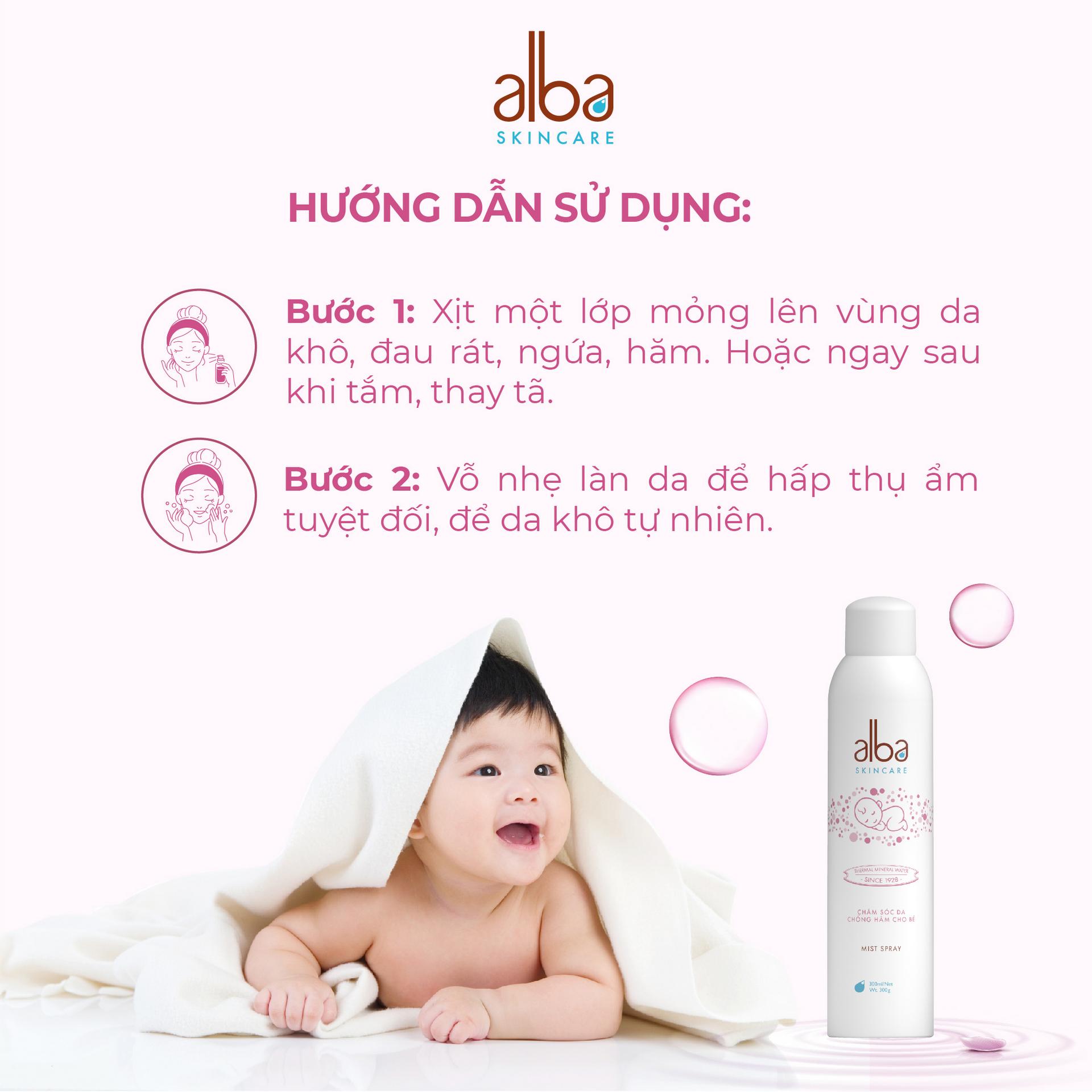1. Tên sản phẩm: Xịt khoáng chăm sóc da chống hăm cho bé Alba Skincare 300ml